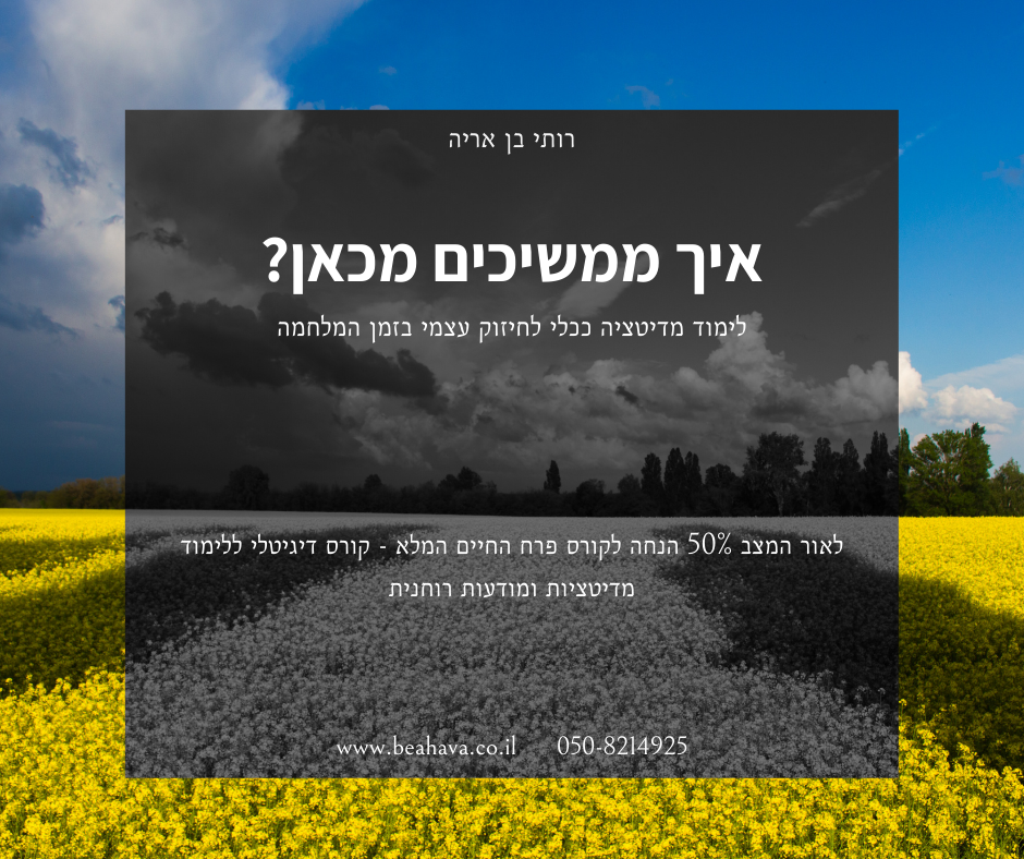 כולנו סובלים מפוסט טראומה . תחושה של אובדן שליטה, חרדות , לחץ ועצב גדול. לפעמים התחושות מלוות בקושי לנשום, כאבים, עייפות ודיכאון . במיוחד מי שחווה אבדן והתמודד עם התופת הנוראית. איך ממשיכים מכאן? לא נוכל לשנות את המציאות אבל נוכל להשפיע על התחושות שלנו ביחס למצב. הוכח כי מדיטציה ותהליכים מנטליים יכולים מאוד לעזור […]
