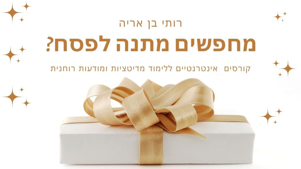 מחפשים מתנה מיוחדת ולא שגרתית לפסח? מתנה שגם תוכלו להעניק לאדם אהוב הנמצא בחו”ל? וחשוב ביותר – מתנה מיוחדת בשבילכם . שמעתם על כוחות המדיטציה? מסקרן אתכם לתרגל אבל אין לכם כרגע זמן/ יכולת/ מוכנות להתחייב להגיע לקורס שבועי. במיוחד בשבילכם הכנתי קורסים אינטרנטיים שילוו אתכם בתהליך . מדיטציה צריך ללמוד, יש הרבה ידע חשוב […]