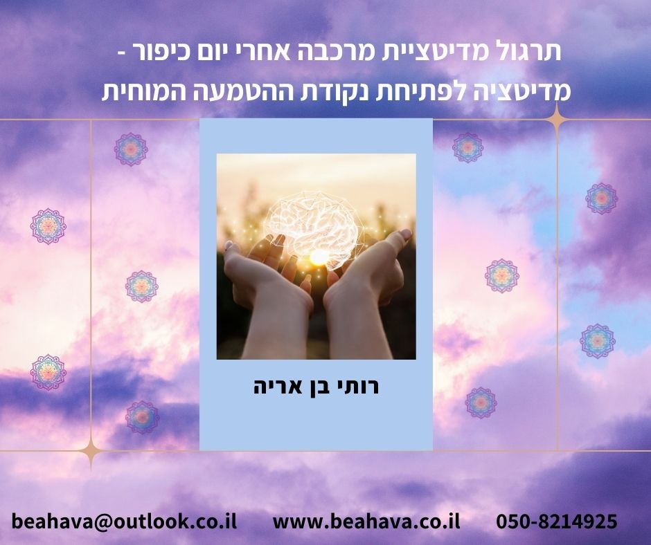 22.9.2021- מדיטציית מרכבה עם פתיחת נקודת ההטמעה המוחית- מדיטציית שמע שקיבלנו אחרי יום כיפור מדיטציית המשך למדיטציית פתיחת נקודת הבחירה.