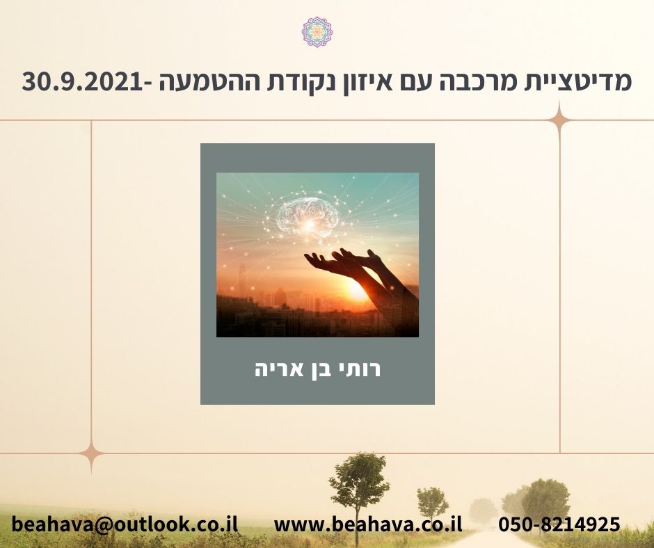 30.9.2021- מדיטציית מרכבה עם איזון נקודת ההטמעה המוחית. המשך לתהליך פתיחת נקודת הבחירה שקיבלנו לראש השנה