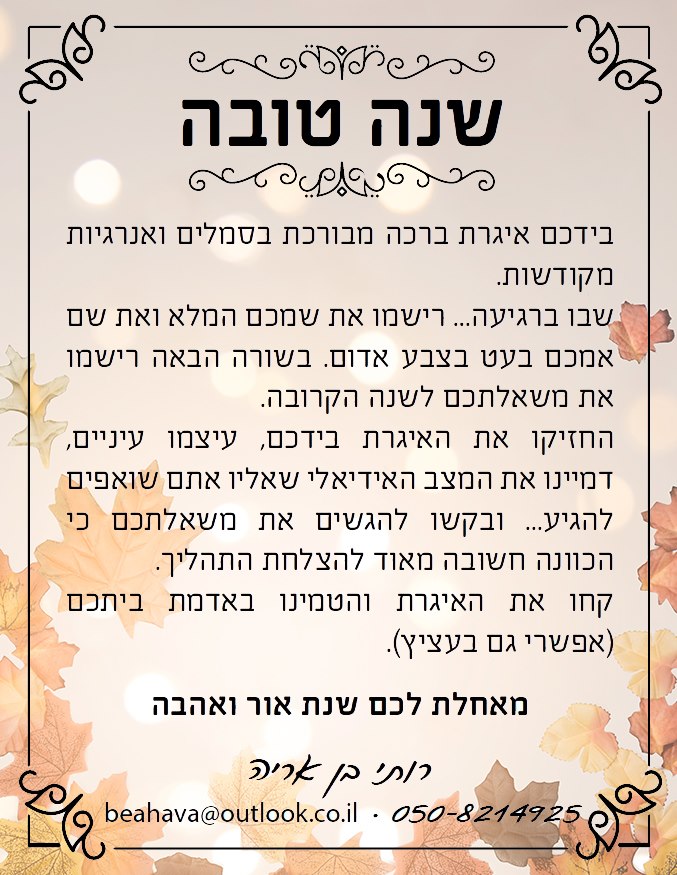 אז מאחלת לכולנו שנה נפלא של התחדשות ושינוים מבורכים.